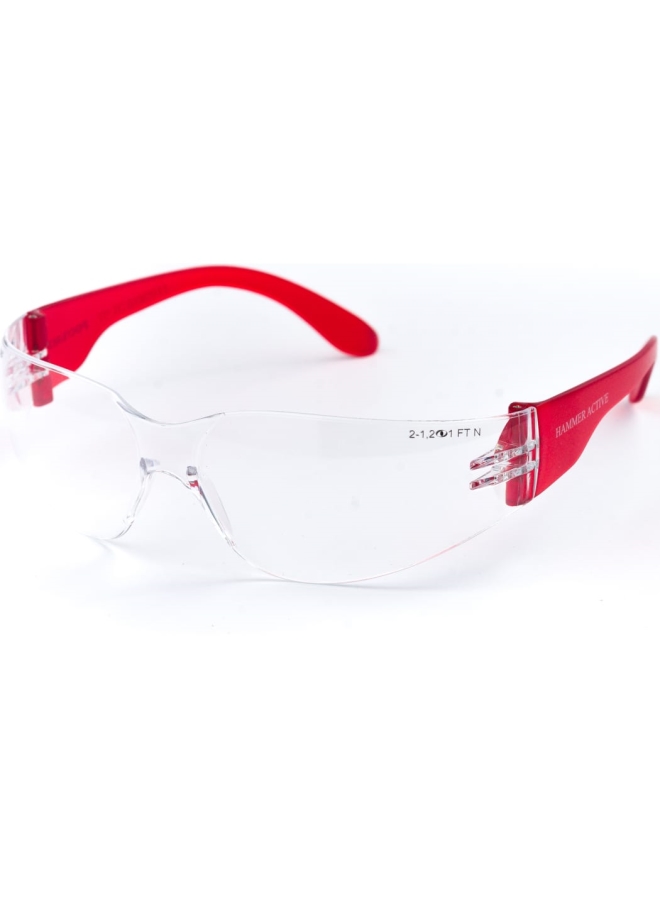 Панорамные линзы с односторонним покрытием от запотевания изнутри и от царапин снаружи. Два уровня защиты: фронтальный, боковой. Дужки одноцветные красные, без регулировки, заушники широкие.